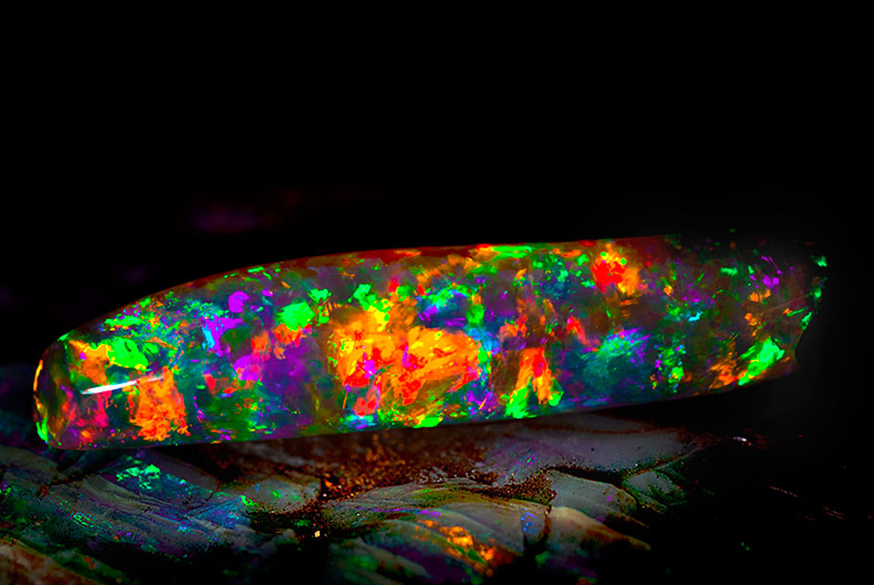 The GIA describes this breathtaking stone best: Fireworks. Jellyfish. Galaxies. Lightning. This gem displays a kaleidoscope of color and light. It’s inspiring and full of transformative properties.