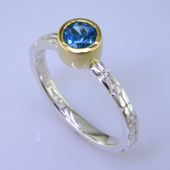 A maritime-inspired blue, this hue is bold and energetic, but somehow feels like a refreshing day on the water. It encourages escape - think vacation time. A great-spirited hue. Wear it on your finger in the form of this delicate Blue Topaz stackable ring.