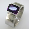 This is a brand new platinum ring, purchased from a local jeweler who is no longer in business. The metal holding the stone is far too thin, uneven, and poorly attached to the ring. The stone was impossible to tighten, and the ring was impossible to repair because the wrong solder was used to attach the channel walls. In addition, the ring was about 2mm too narrow for the stone. The amethyst is too low in quality for a platinum ring, the setting job is as bad as I have ever seen, and the stone was severely scratched in the process of setting and finishing. This is not acceptable workmanship under any circumstances.