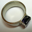 This is a brand new platinum ring, purchased from a local jeweler who is no longer in business. The metal holding the stone is far too thin, uneven, and poorly attached to the ring. The stone was impossible to tighten, and the ring was impossible to repair because the wrong solder was used to attach the channel walls. In addition, the ring was about 2mm too narrow for the stone. The amethyst is too low in quality for a platinum ring, the setting job is as bad as I have ever seen, and the stone was severely scratched in the process of setting and finishing. This is not acceptable workmanship under any circumstances.