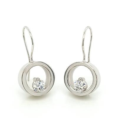These earrings are truly timeless. Classic circles with "floating" diamonds at the bottom. Hand crafted in recycled 14 karat white gold, with .50ct T.W. super sparkly, Ideal cut diamonds. Measure 1" long.