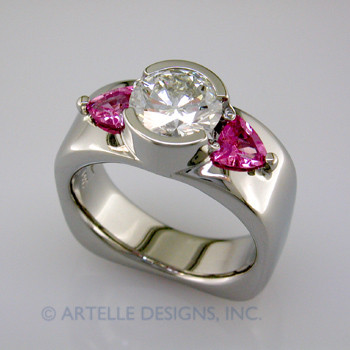 ladies diamond and pink sapphire engagement ring- 3 stone wed 263