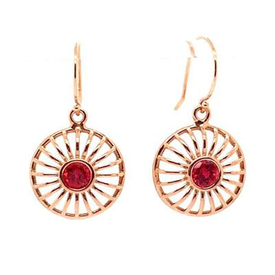 These stunning drop dangle earrings were created in 14 karat rose gold, set with these amazing red ruby lab created gemstones. Elegant, and timeless. Hangs on 14 karat rose gold wires.