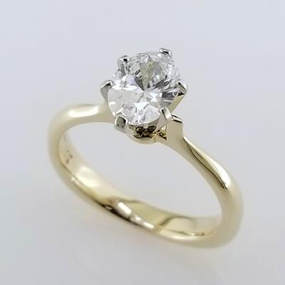 Simplicity at its best, this timeless, but modern 14 karat yellow gold solitare engagement ring is the perfect ring to set off any diamond. We set an 8x6 Oval diamond (sold separately), but we can set any shape, or size you desire. We will even set your diamond.